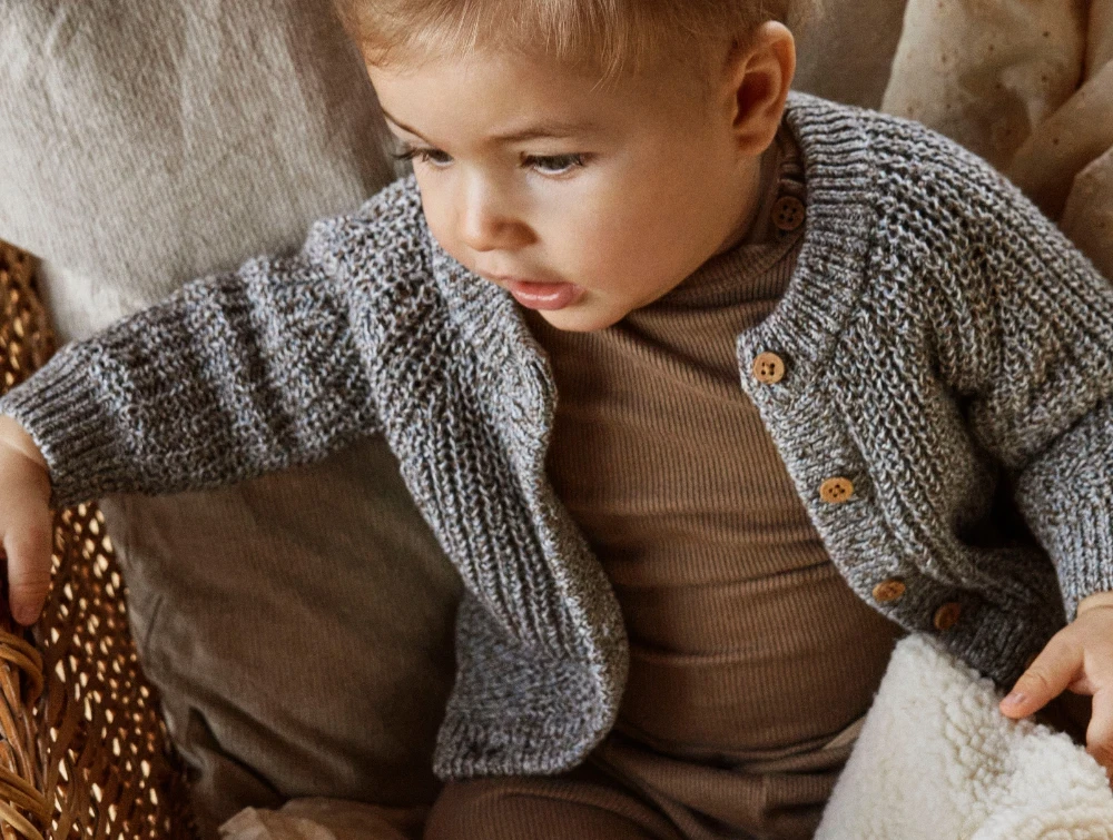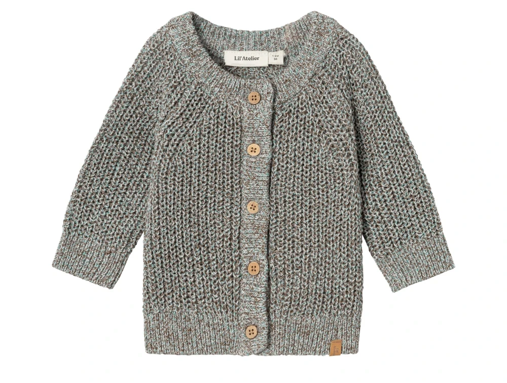 Strikcardigan i farven sky gray fra Lil' Atelier.