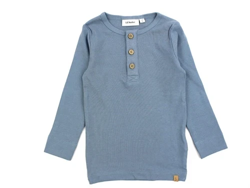 Bluse/langærmet t-shirt i rib i farven smoke blue fra Lil' Atelier.