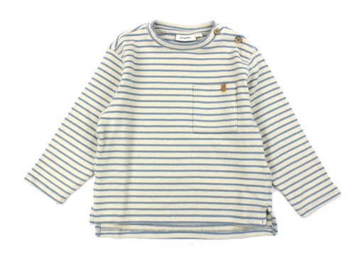 Blød bluse med lille lomme og striber i farven smoke blue fra Lil' Atelier.