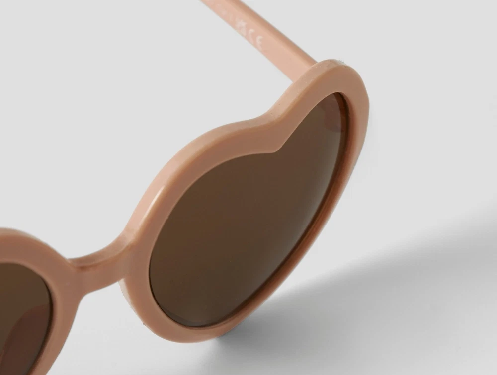 Solbriller i lyserød nuance (Peach Whip N080) fra Lil Atelier med hjerteformede glas.