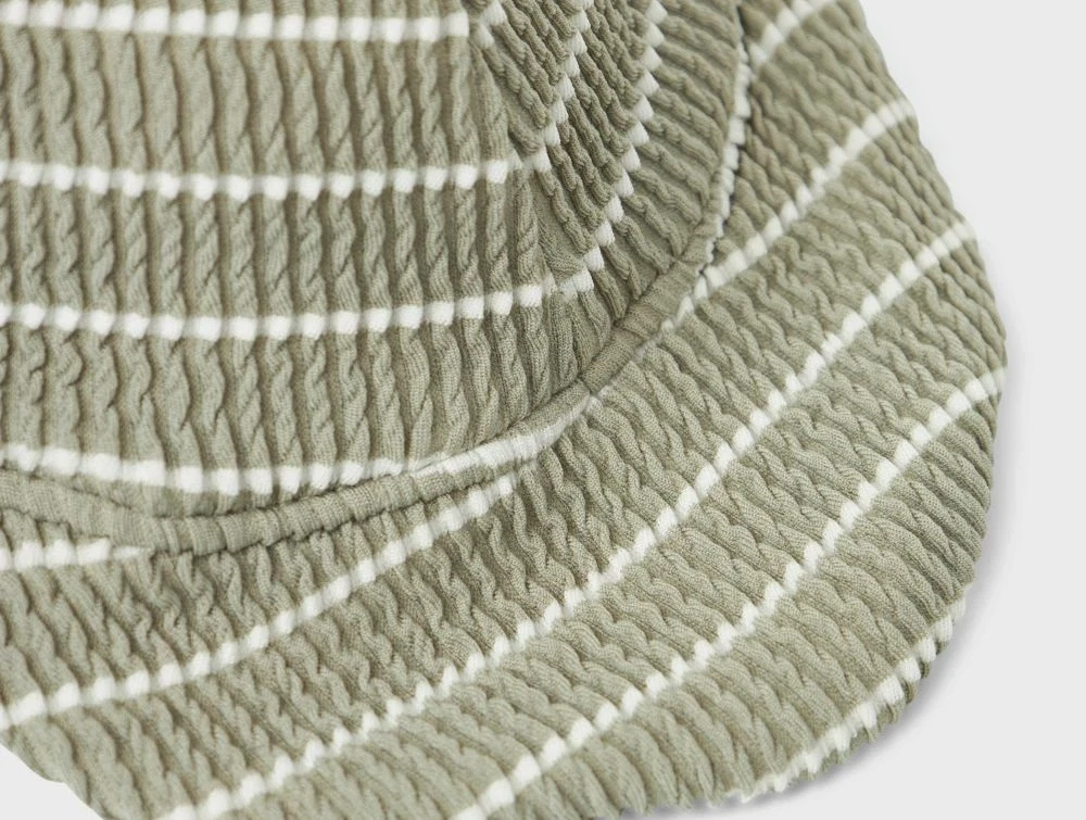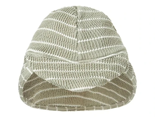 Stribet badehat i farven støvet grøn (forest fog) med smalle hvide striber fra Lil' Atelier.