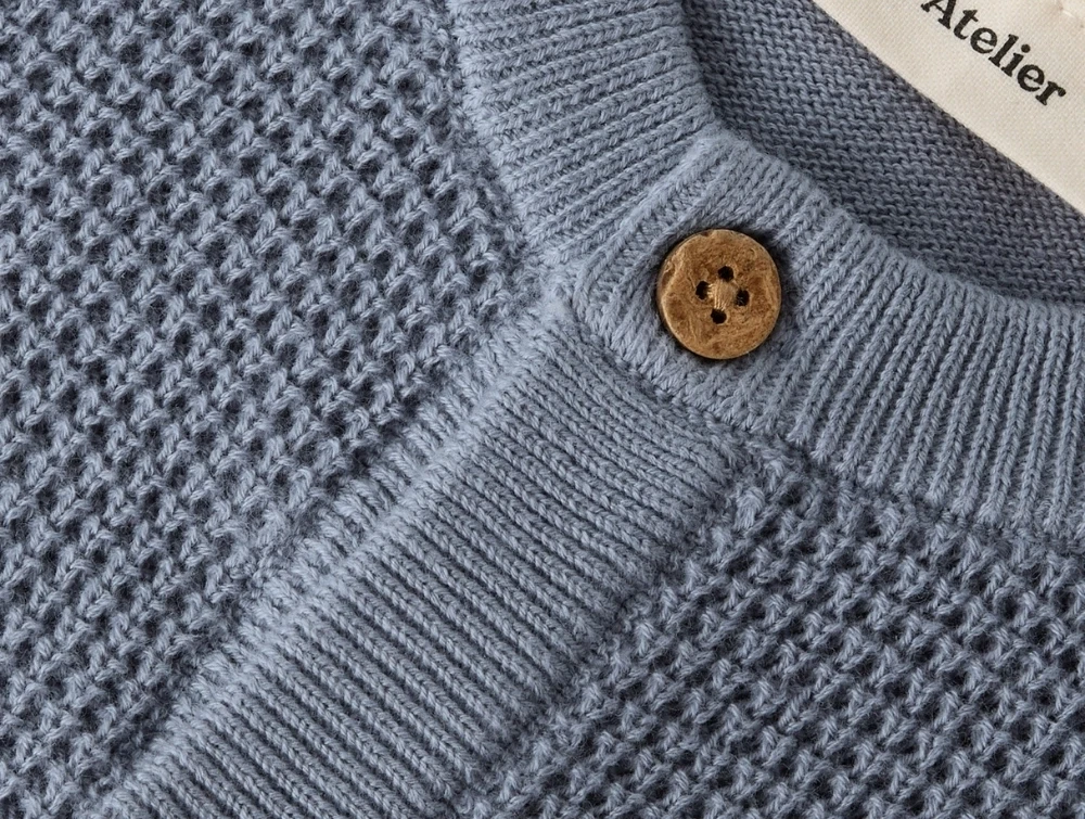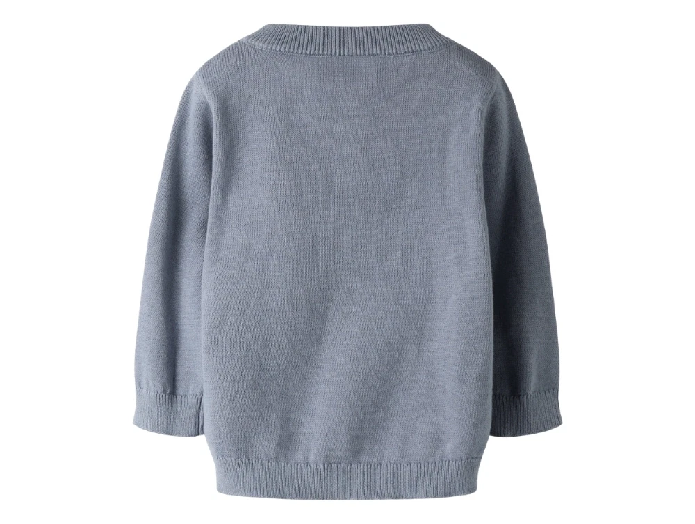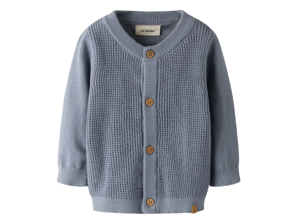 Strikcardigan i blå nuance (Tradewinds) fra Lil' Atelier.