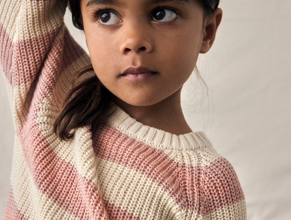 Lil' Atelier striktrøje i råhvid med rosa striber