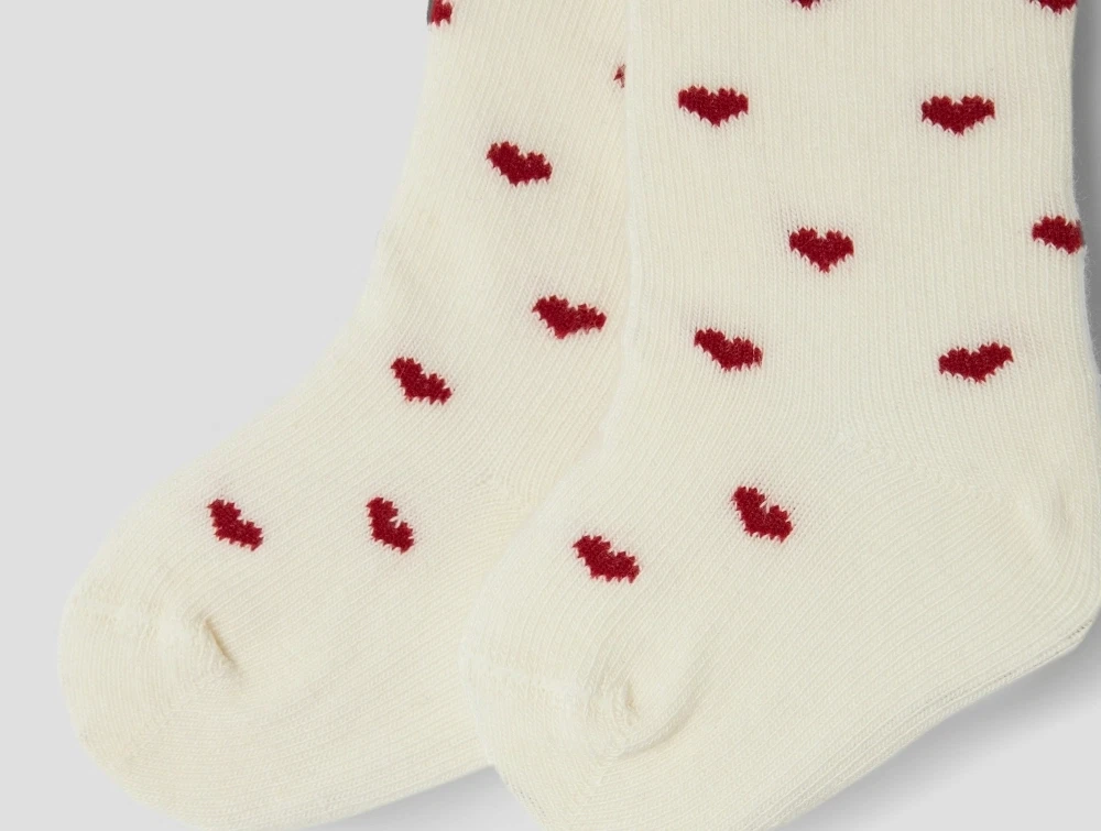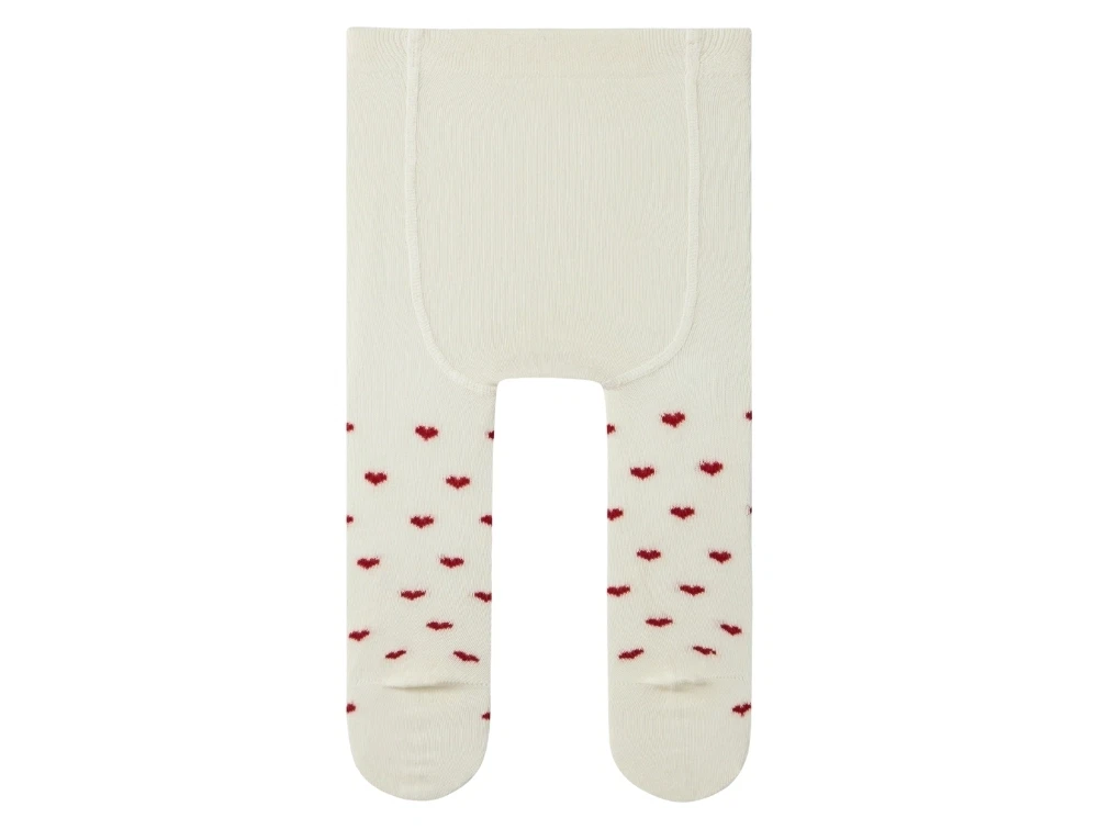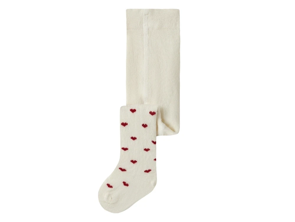 Lil' Atelier strømpebukser i råhvid med røde hjerter