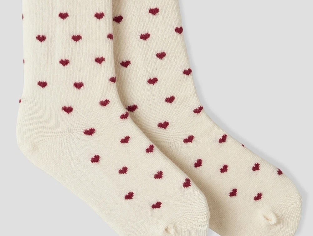 • Jacquardmønster med små røde hjerter