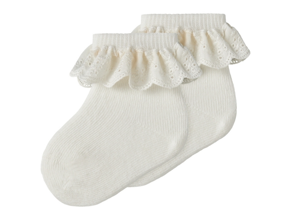 Strømper i 2-pak i råhvid nuance (coconut milk) fra Lil' Atelier med dekorativ blondekant.