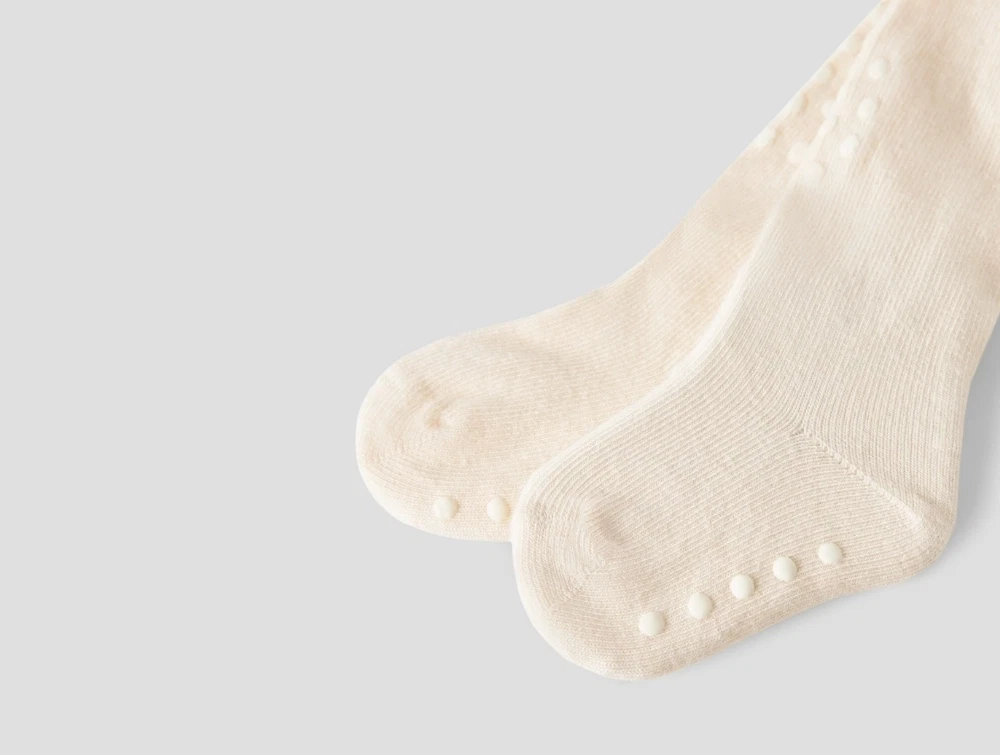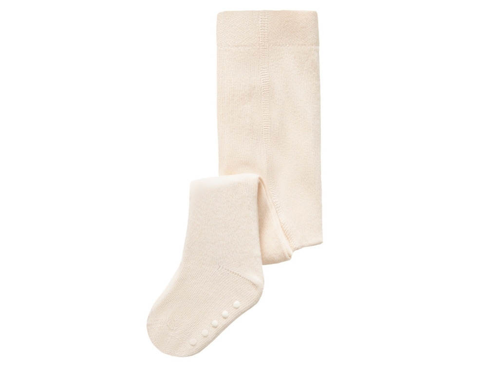 Strømpebukser i råhvid nuance fra Lil' Atelier. De bløde strømpebukser har skridsikre dutter under fødderne, som giver et godt fodfæste på glatte overflader. Den elastiske talje gør dem behagelige at have på hele dagen.