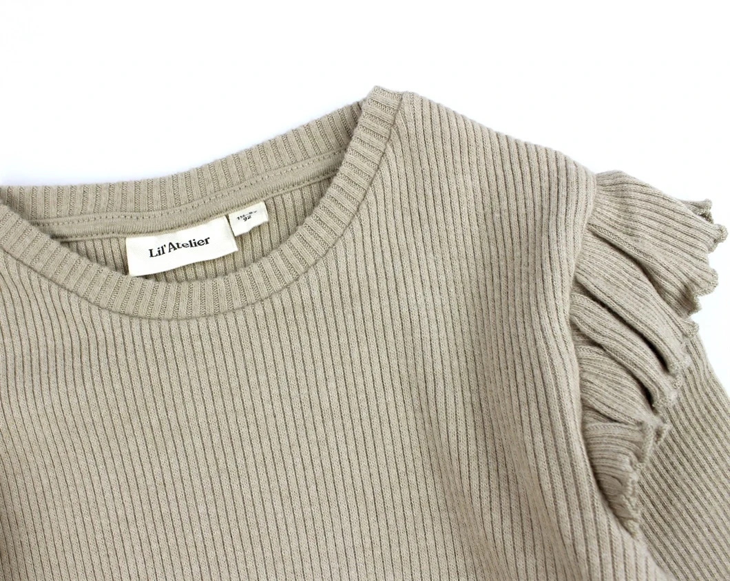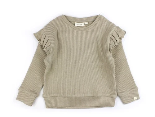 Strikbluse i farven travertine melange med flæser Lil' Atelier.