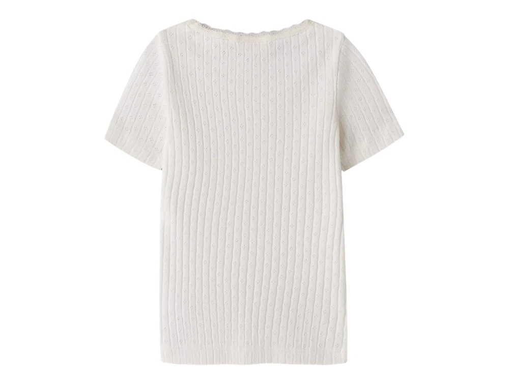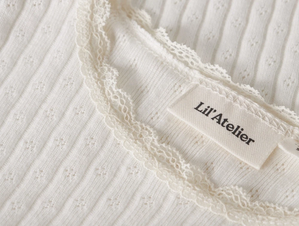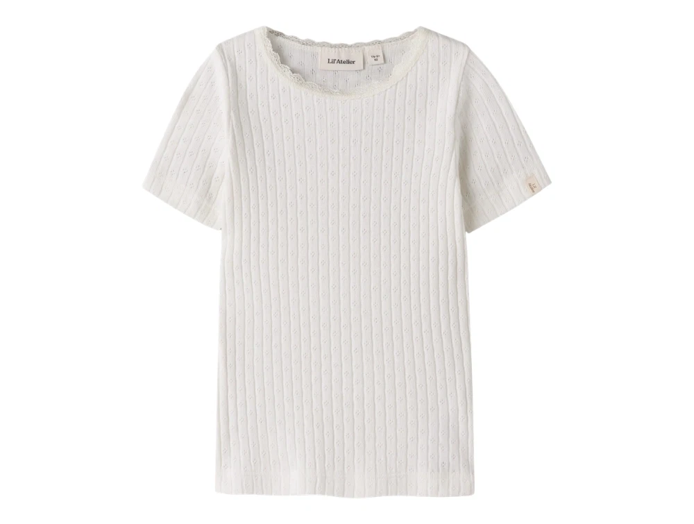 Lil' Atelier t-shirt coconut milk med rib og blondekant