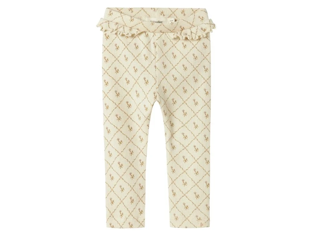 Leggings i farven turtledove med blomsterprint fra Lil' Atelier. Produceret i 57% økologisk bomuld, 38% TENCEL™ Lyocell og 5% elastan.