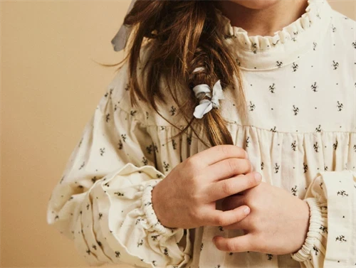 Kjole i farven turtledove med blomster fra Lil' Atelier.