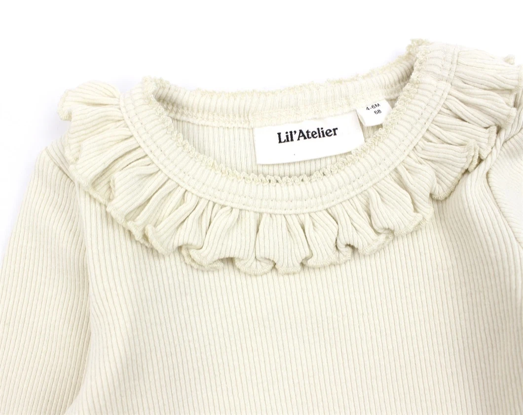 Body i farven turtledove med flæsekrave fra Lil' Atelier.