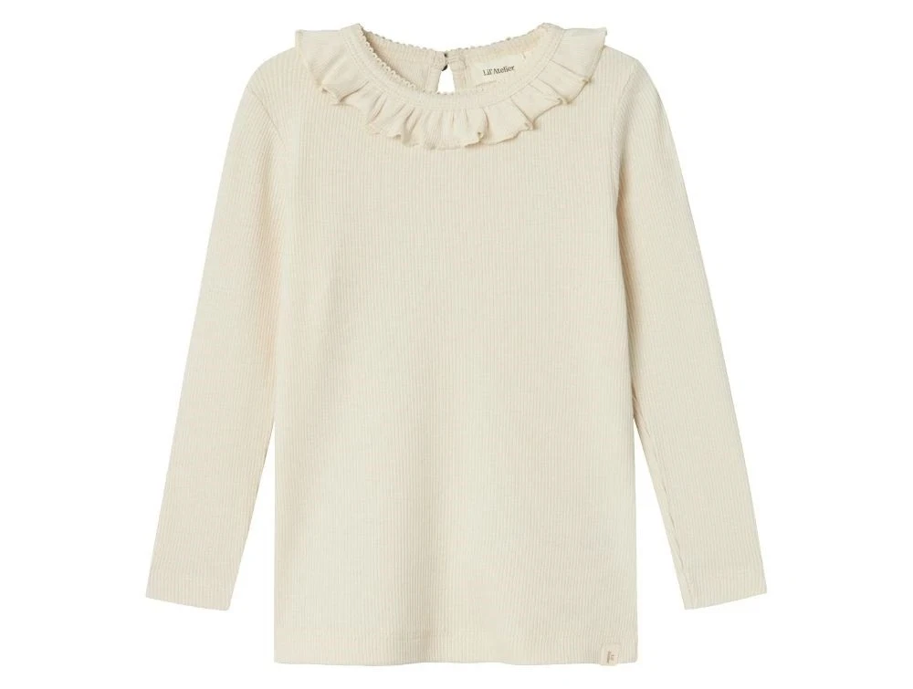 Bluse i farven turtledove med lille flæsekrave fra Lil' Atelier.