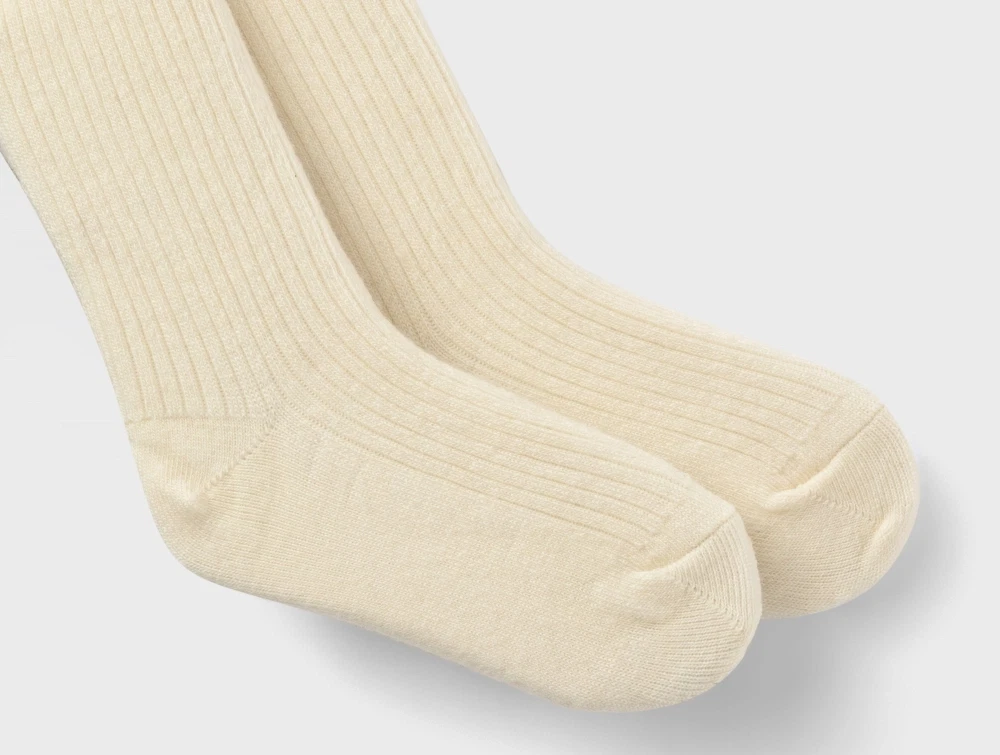 Uldstrømpebukser i ribstrik i farven turtledove melange fra Lil' Atelier.