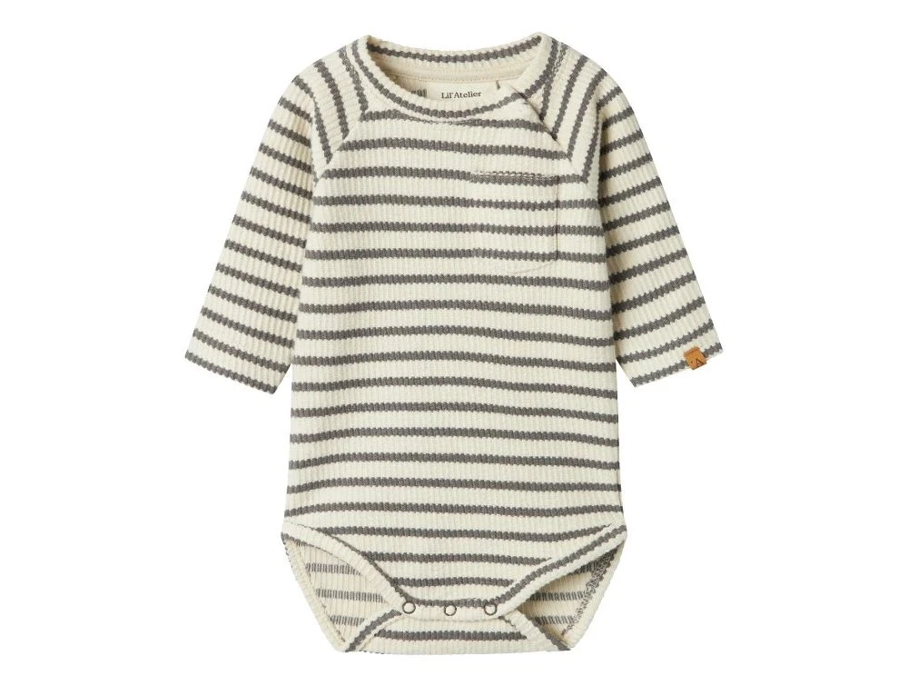 Body i farven turtledove med striber i farven pewter fra Lil' Atelier.
