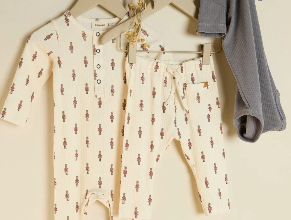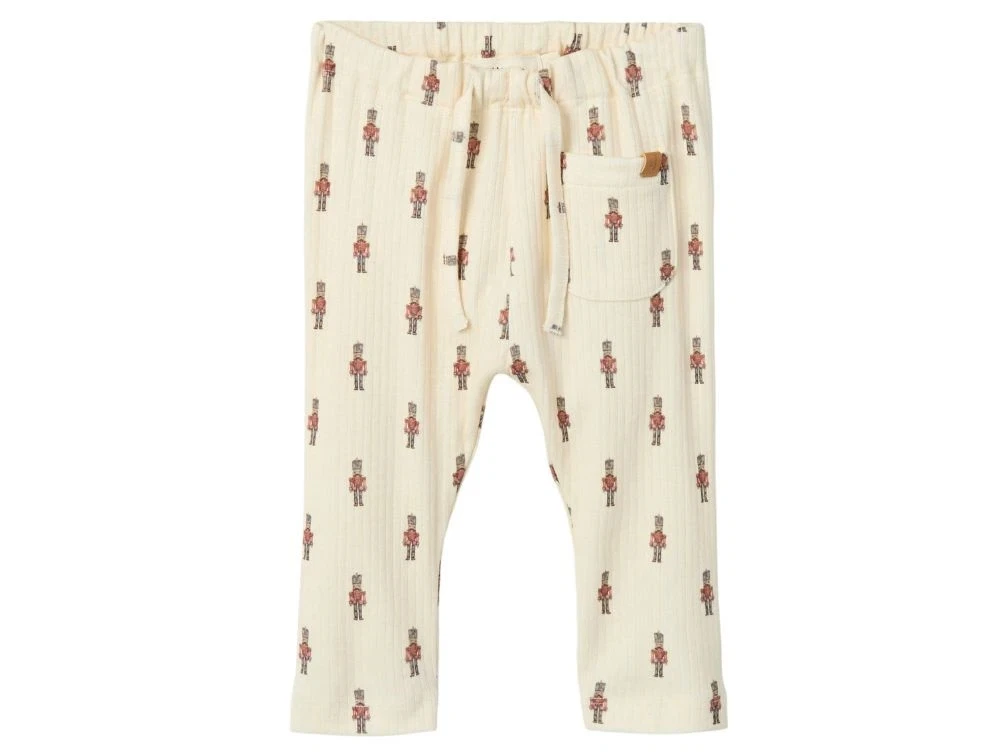 Bukser i farven turtledove med tinsoldat-print fra Lil' Atelier.