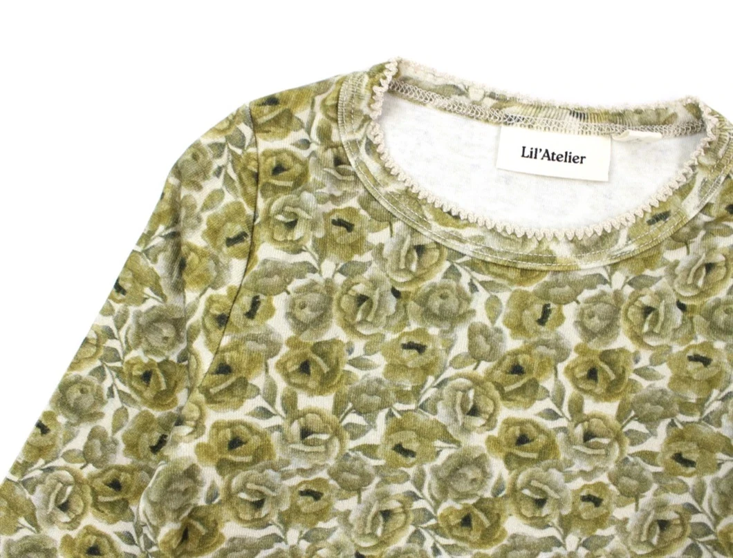 Langærmet top i farven turtledove print fra Lil Atelier.