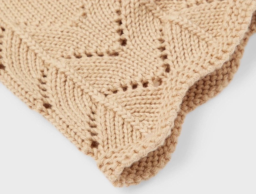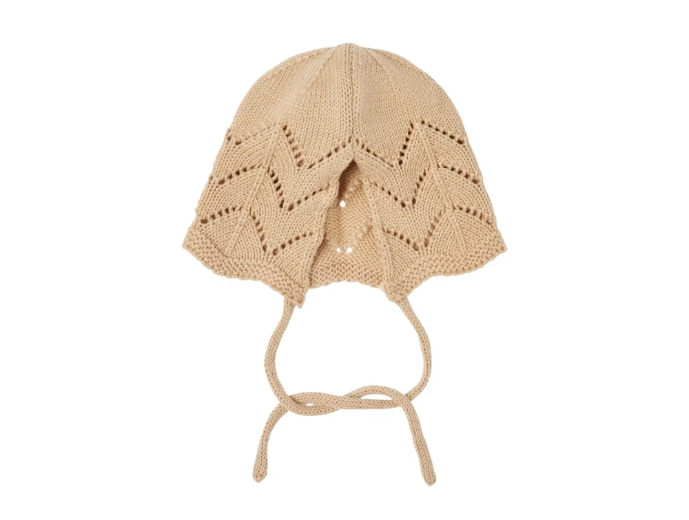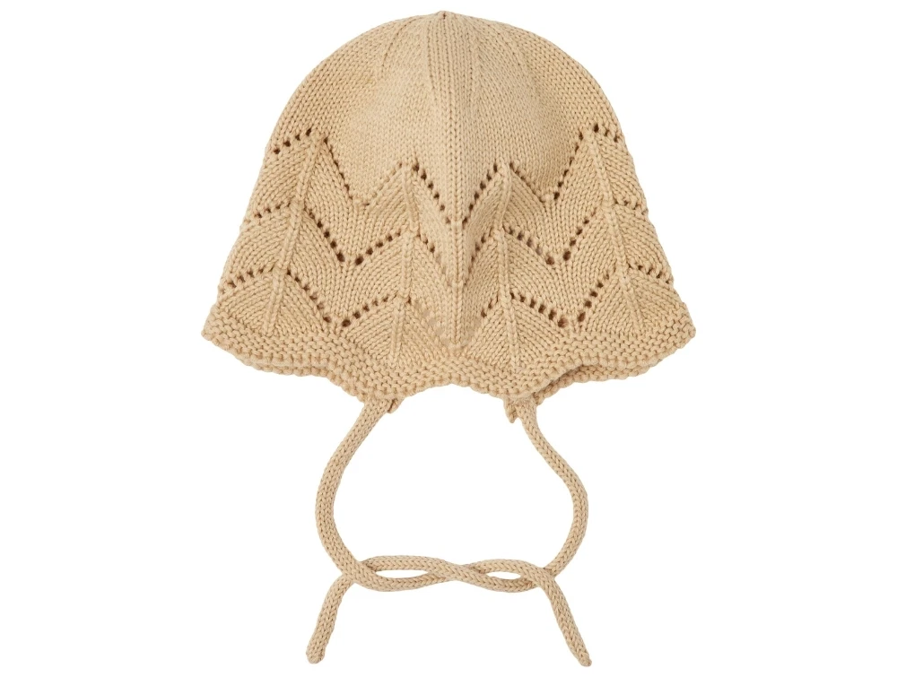 Strikket babyhjelm i økologisk bomuld i farven warm sand/melange fra Lil Atelier.