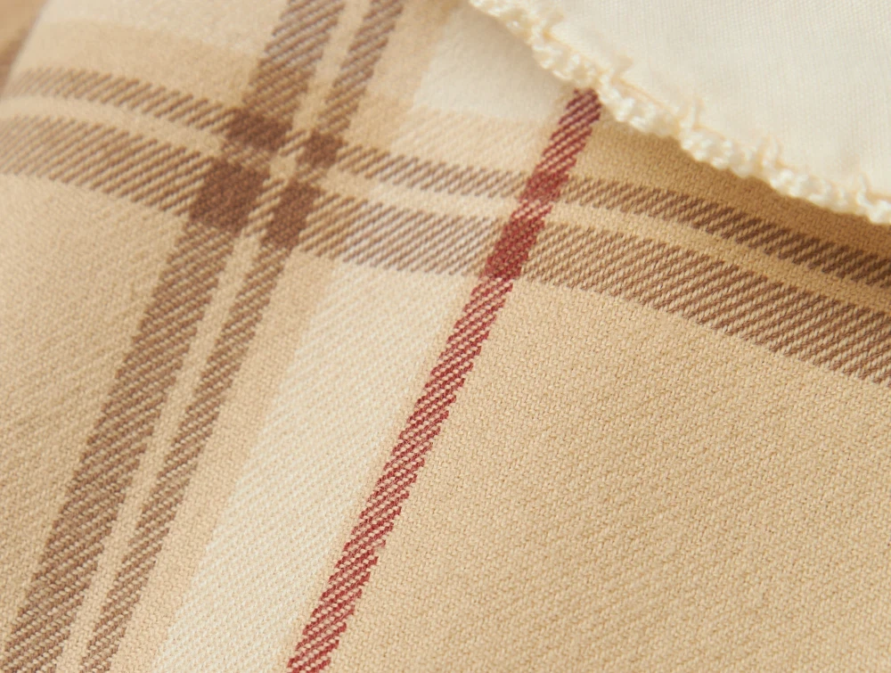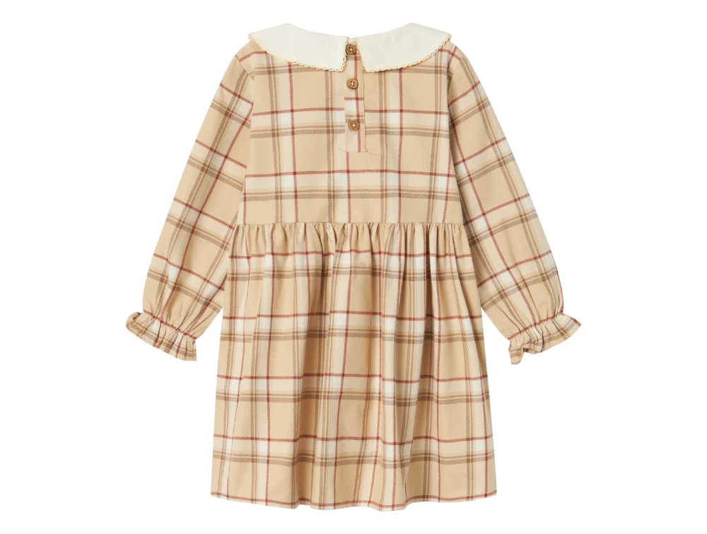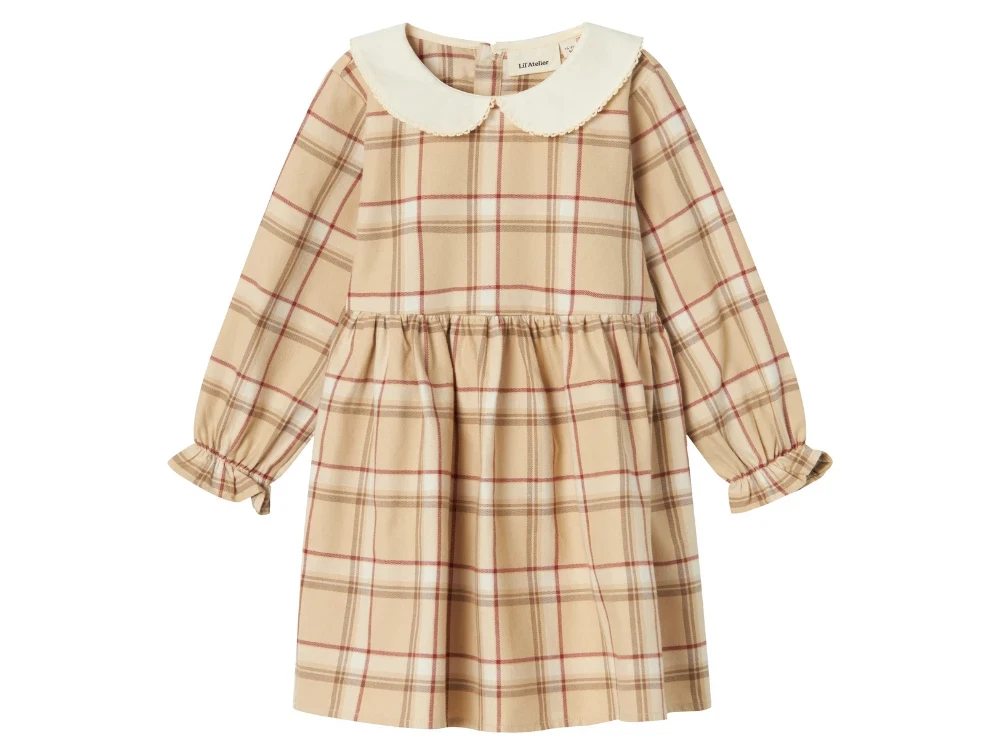 Kjole i farven warm sand med tern og krave fra Lil' Atelier.