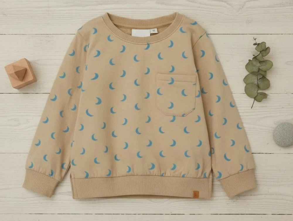 Sweatshirt i økologisk bomuld i farven white pepper med måneprint fra Lil' Atelier.
