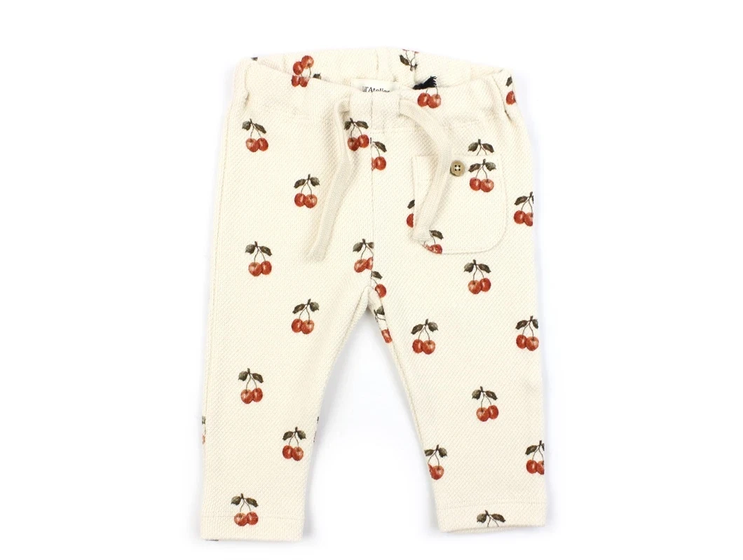 Sweatpants i farven whitecap gray med kirsebærprint fra Lil' Atelier.