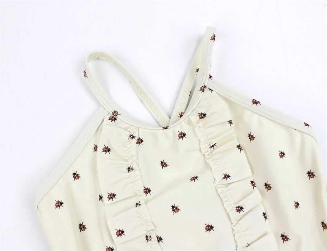 Badedragt med flæser foran og skønt print af mariehøns fra Lil' Atelier.