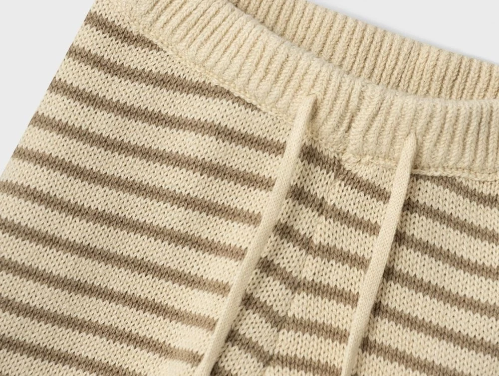 Stribede bukser i strik i farven wood ash fra Lil' Atelier.