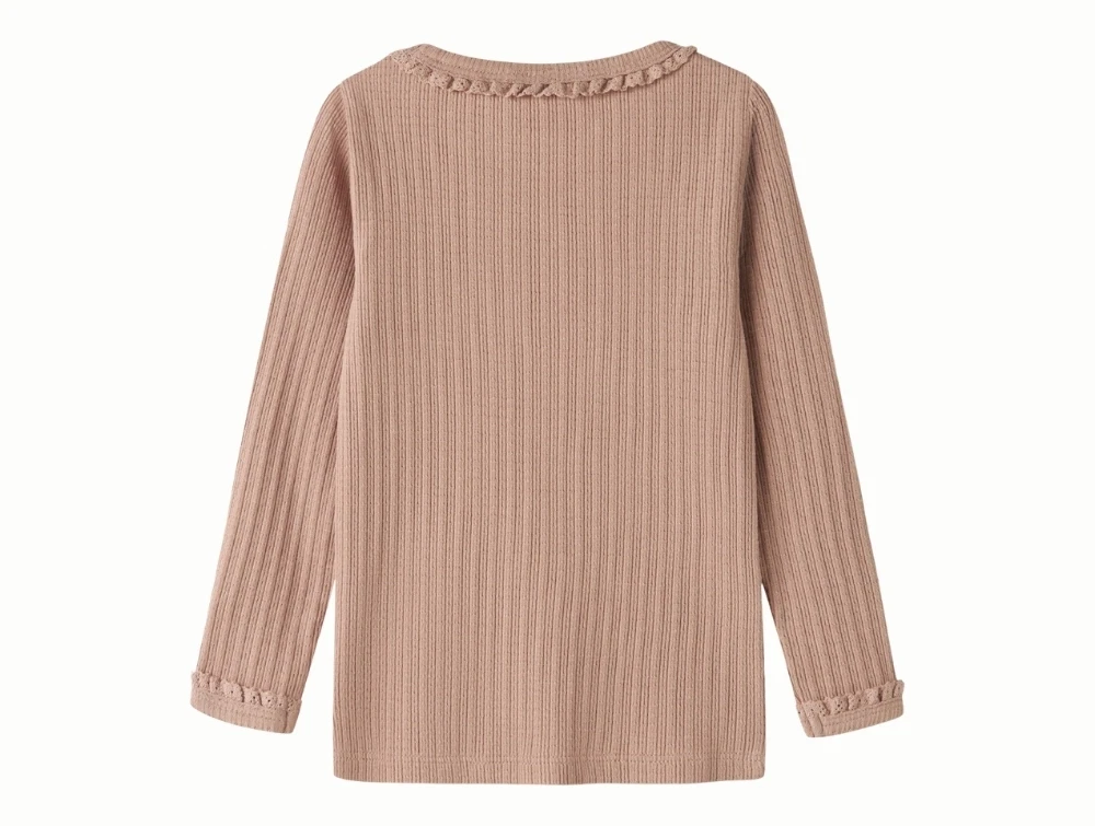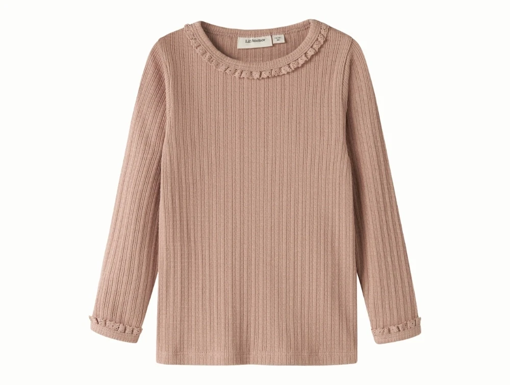 Lil' Atelier bluse i rosabrun nuance med rib og blondekant