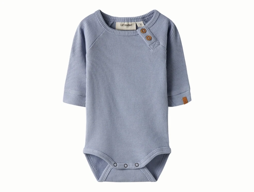 Langærmet body i støvet blå nuance (zen blue) fra Lil' Atelier.