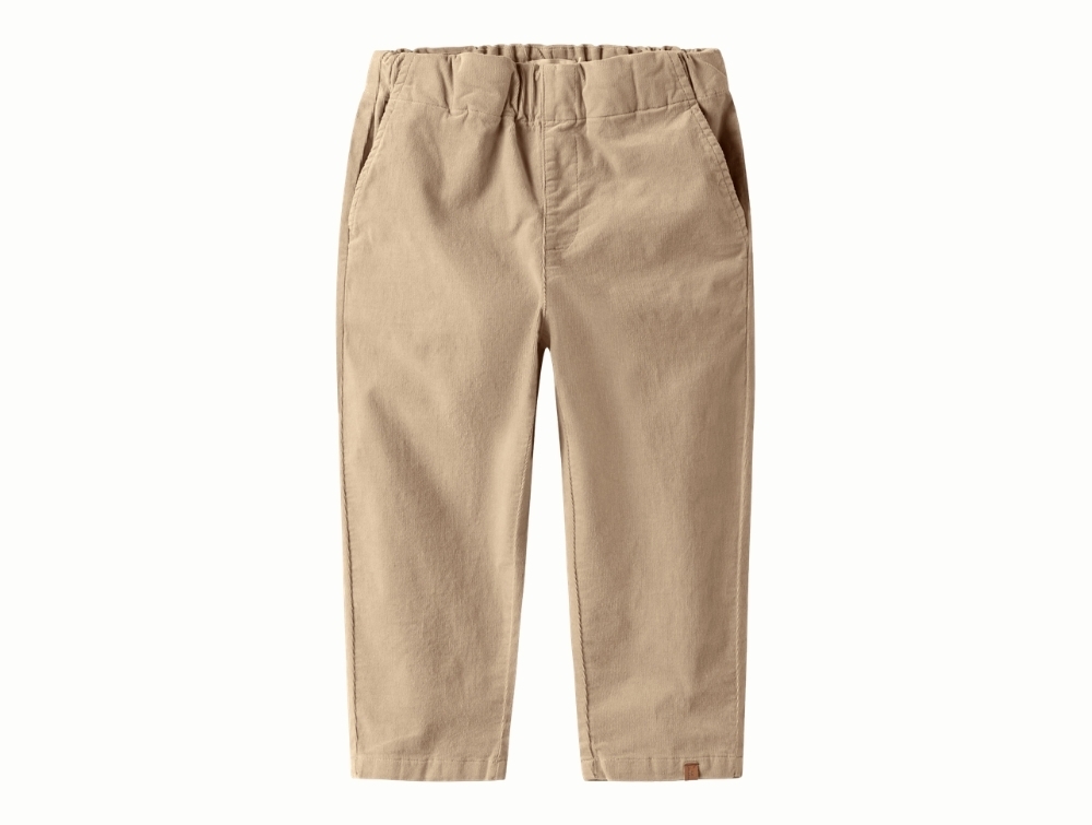 Lil\' Atelier bukser i beige nuance i fløjl set forfraLil\' Atelier bukser i beige nuance i fløjl på modelLil\' Atelier bukser i beige nuance med elastik i taljenLil\' Atelier bukser i beige nuance set bagfra