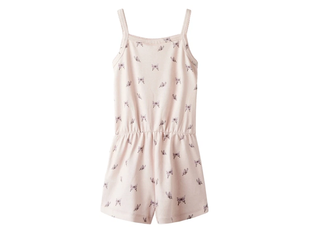 Buksedragt i sart rosa nuance (peach blush butterfly) fra Lil' Atelier.