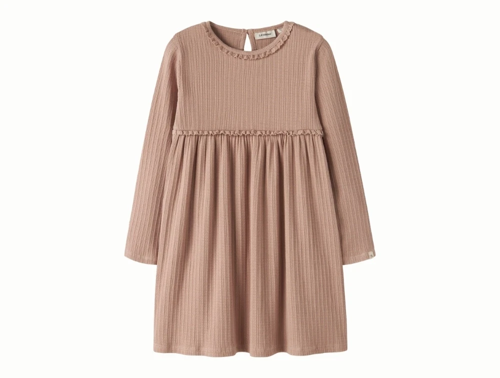 Lil' Atelier kjole i rosabrun nuance med rib og blondedetalje