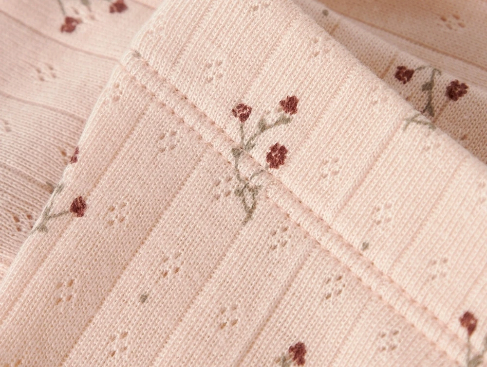 Modellen er fremstillet i blød rib med fint blomsterprint over hele overfladen.