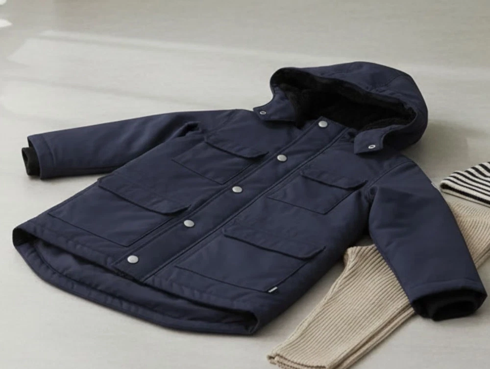 Denne vinterjakke, Winter Jakuni Jacket, er skabt med materialer, der balancerer stil og funktion. Den er lavet af 100% nylon, både på den glatte og rustikke yderside samt den superbløde inderside med teddy-foer. Jakken er ned over numsen-lang og har en regular pasform, der er lige op og ned, hvilket giver dig en moderne og behagelig stil.