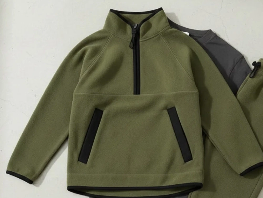Fleecetrøjen har justerbar elastik i linningen.