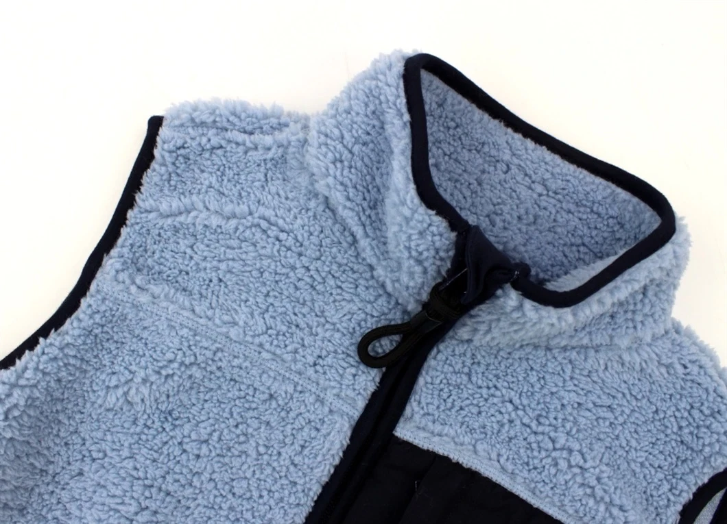 Fleecevest i teddy med lynlås og tre lommer i farven faded denim fra Mads Nørgaard.
