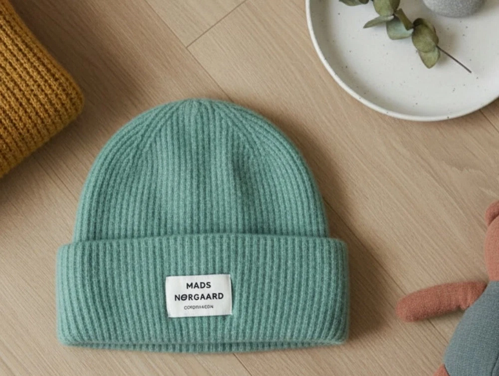 Strikhue i farven holiday fra Mads Nørgaard.
