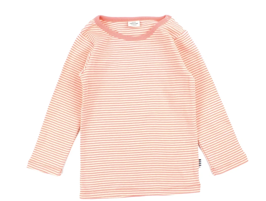 Stribet langærmet t-shirt til børn i farverne shell pink og seedpearl fra Mads Nørgaard.