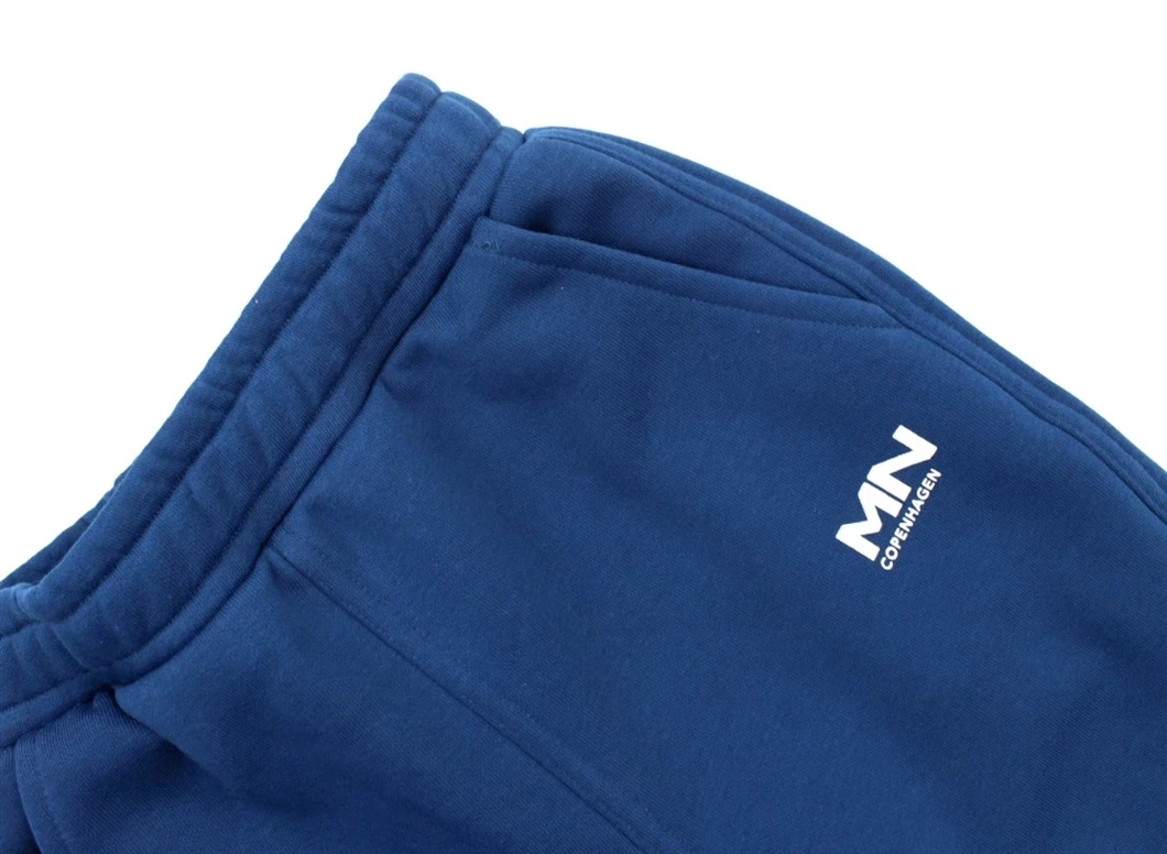 Sweatbukser med elastik i taljen og to lommer i farven gibraltar sea fra Mads Nørgaard.