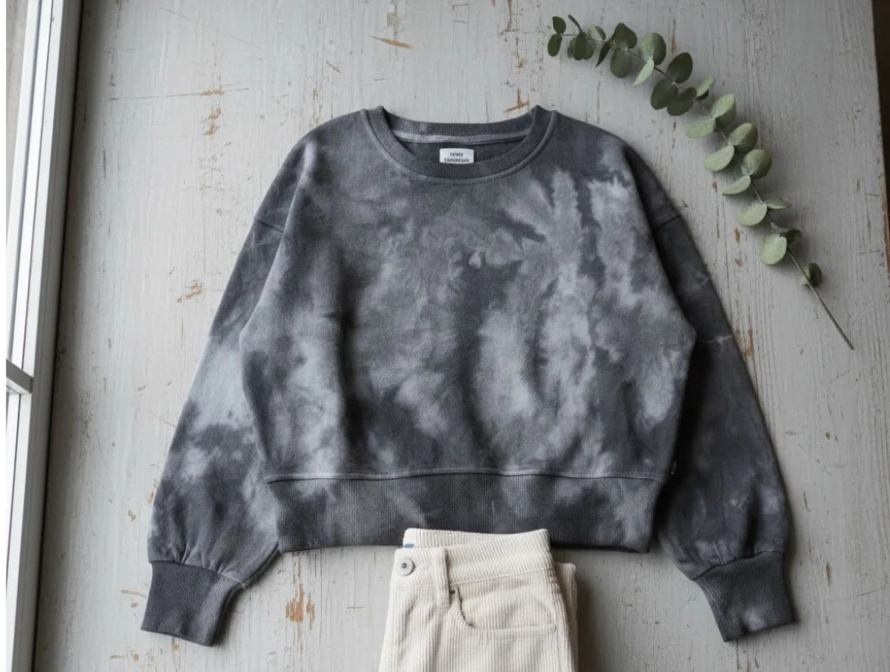 Sweatshirt i sort tie-dye fra Mads Nørgaard.