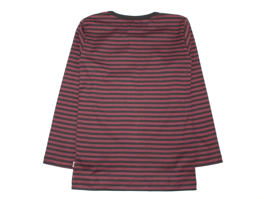 Langærmet t-shirt/bluse i sort og bordeaux fra Mads Nørgaard med rund halsudskæring.