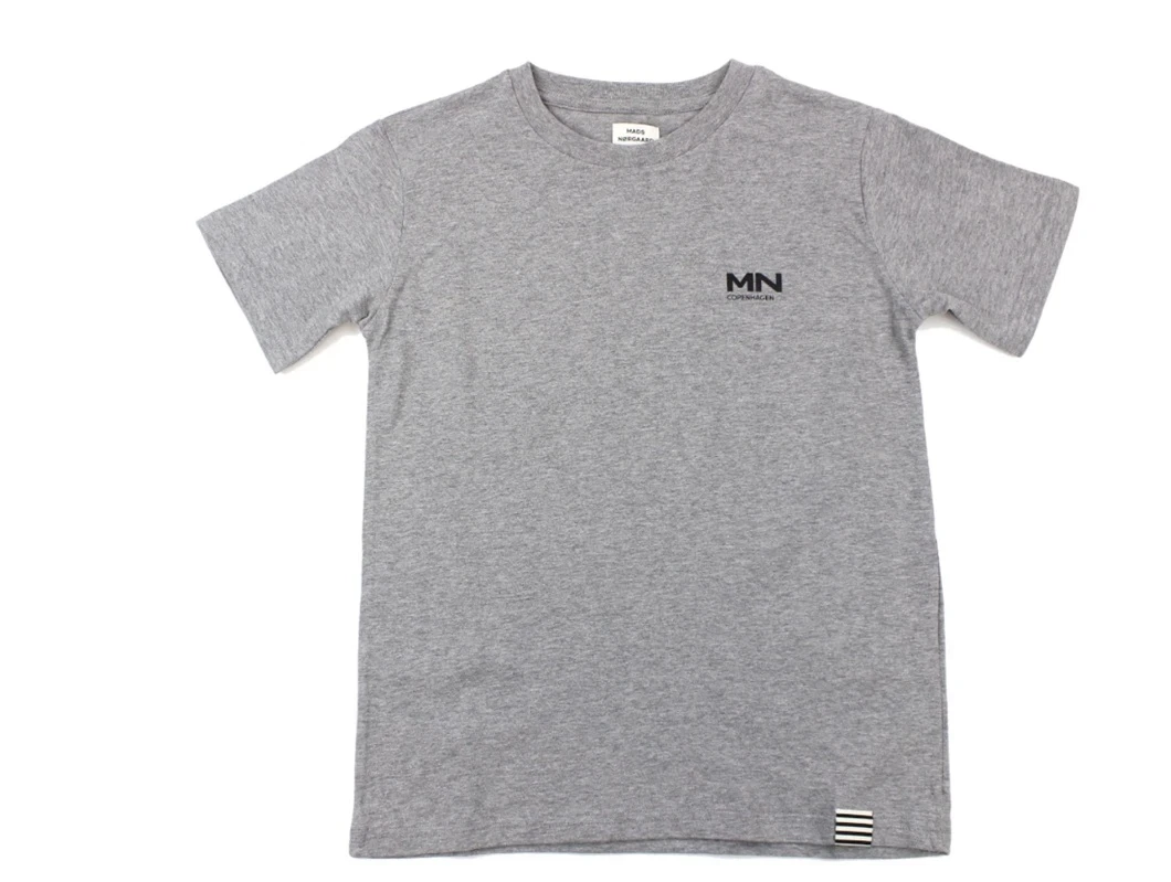 Grå t-shirt med logo på brystet fra Mads Nørgaard.