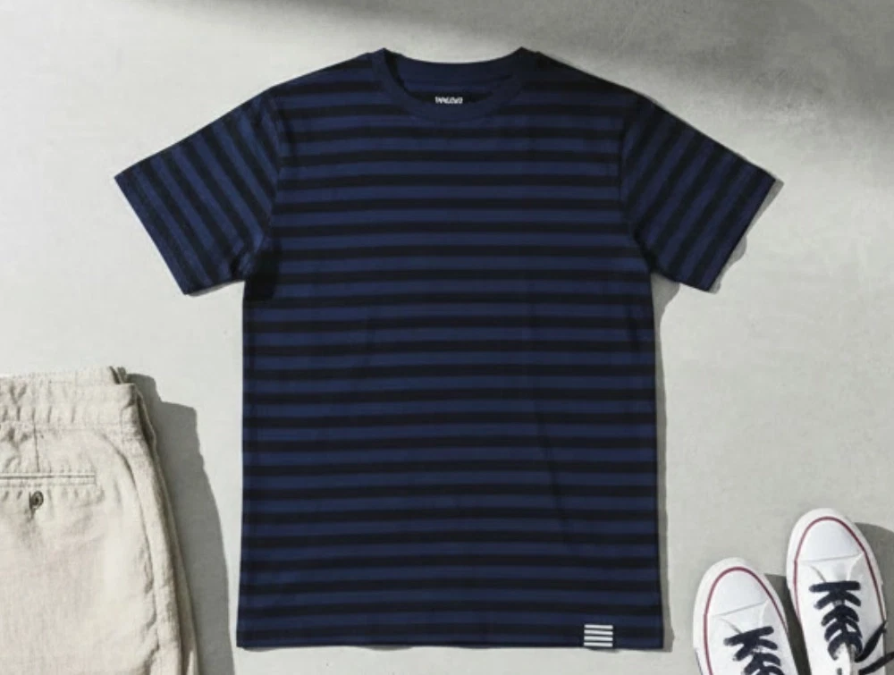 Navyfarvet og sortstribet t-shirt fra Mads Nørgaard.