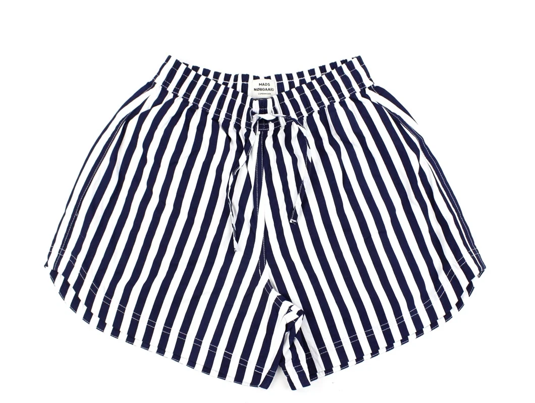 Cool stribede shorts i farverne white alyssum og saragasso sea fra Mads Nørgaard.