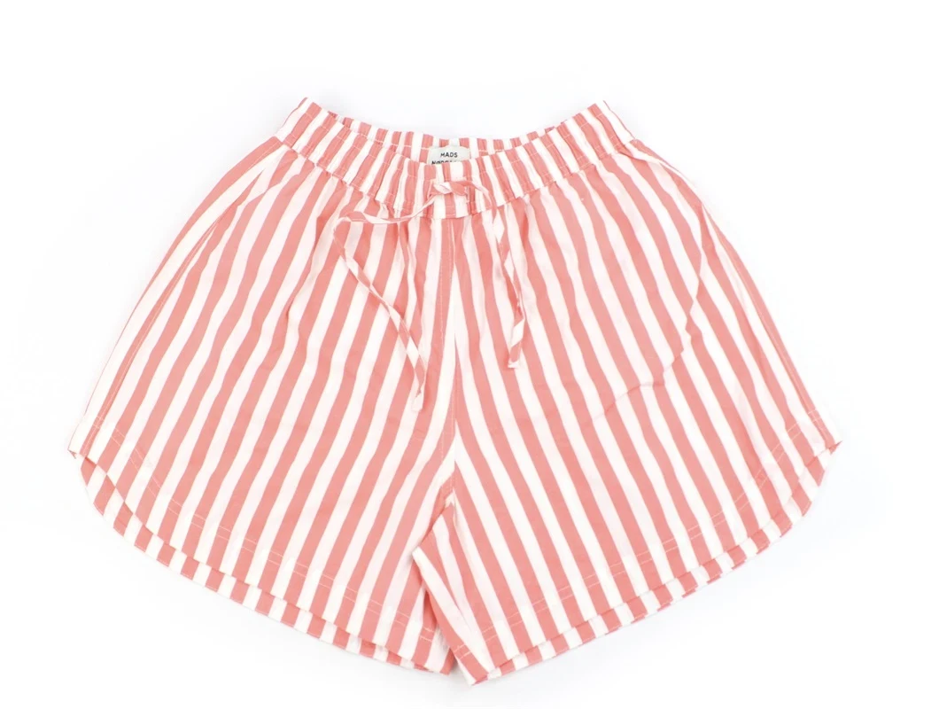 Cool stribede shorts i farverne white alyssum og shell pink fra Mads Nørgaard.