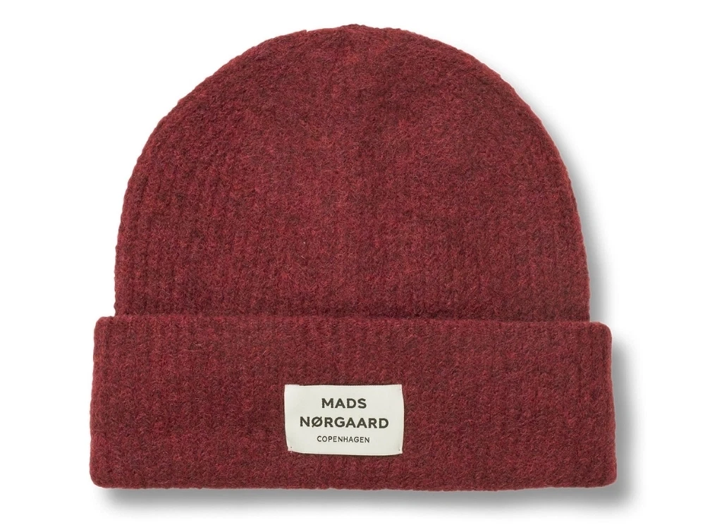 Mads Nørgaard Anju hue i bordeaux med logo og ribstruktur