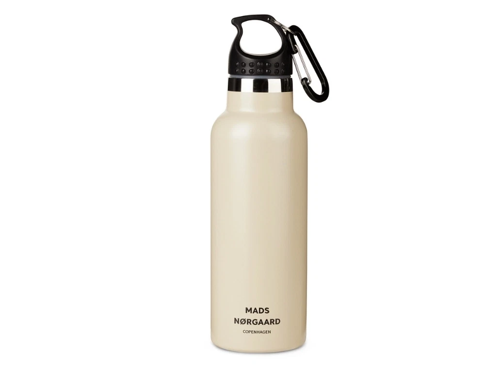 Termodrikkedunk i råhvid (creme brulee) fra Mads Nørgaard med karabinhage og skrulåg.