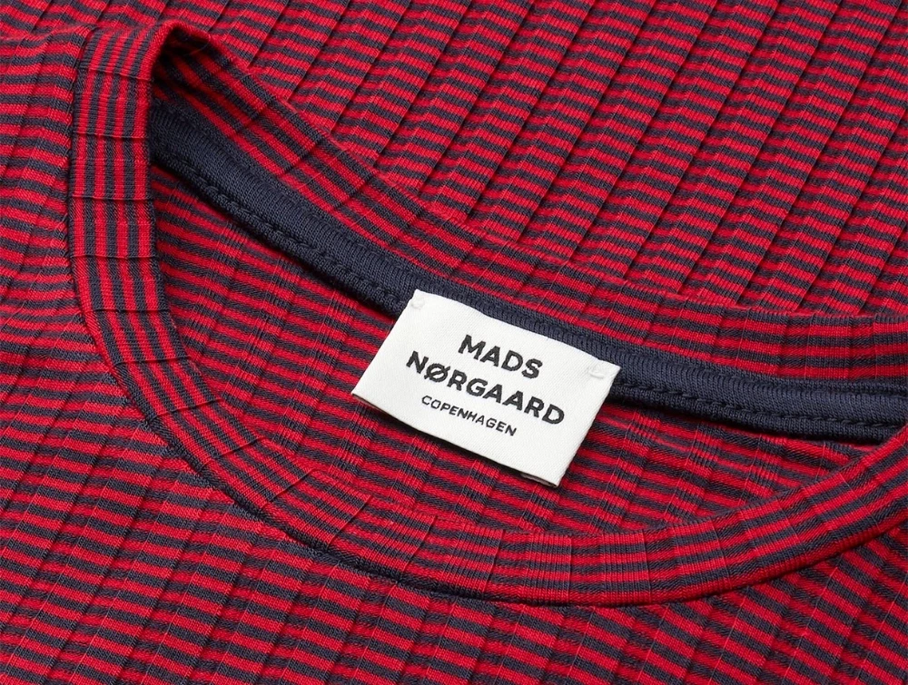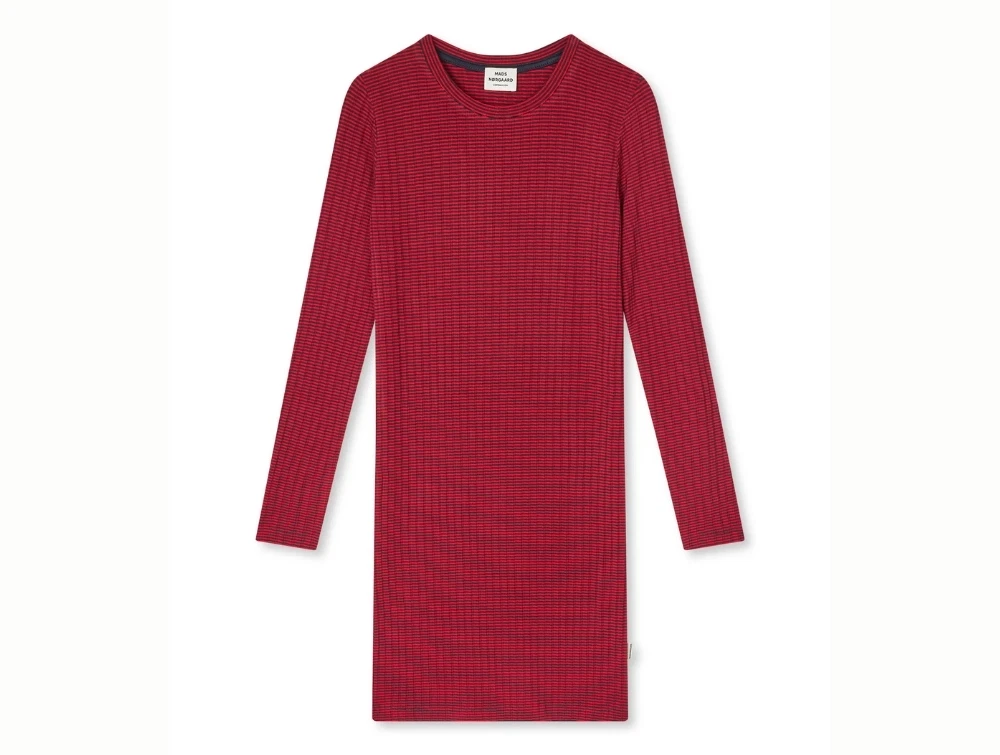 Mads Nørgaard Dubina kjole i rødstribet rib med lange ærmer
