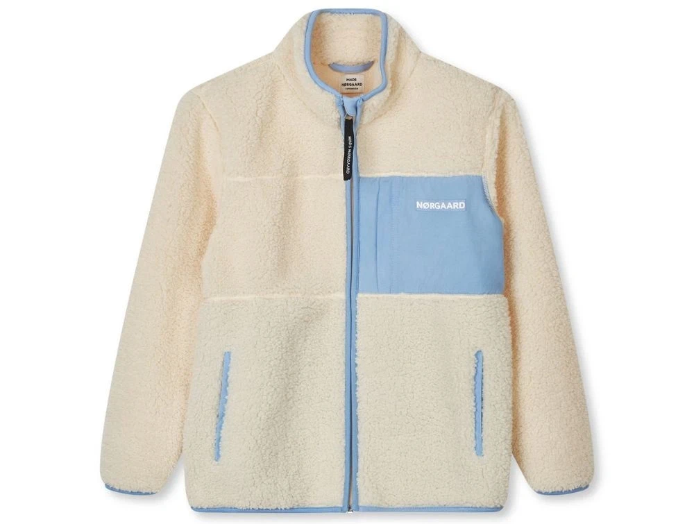 Mads Nørgaard teddy fleecejakke i vanilla custard med blå lomme