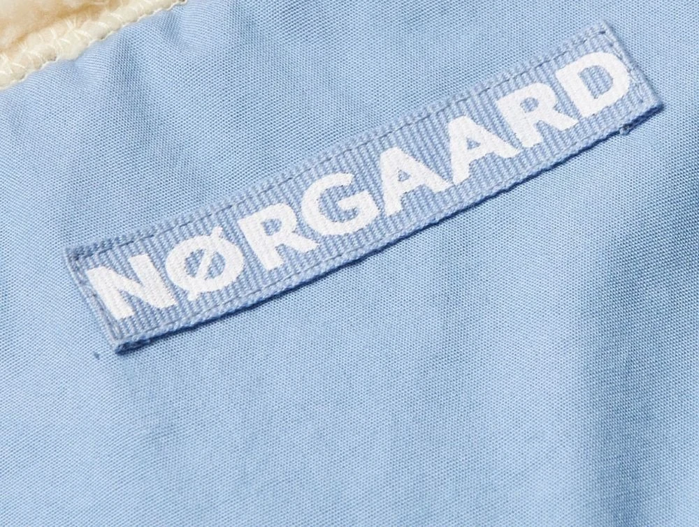 Denne bløde teddy fleecejakke har et sporty udtryk med gennemgående lynlås, høj krave og praktiske sidelommer. Den blå brystlomme med Nørgaard-logo tilføjer et stilrent og funktionelt element til designet.